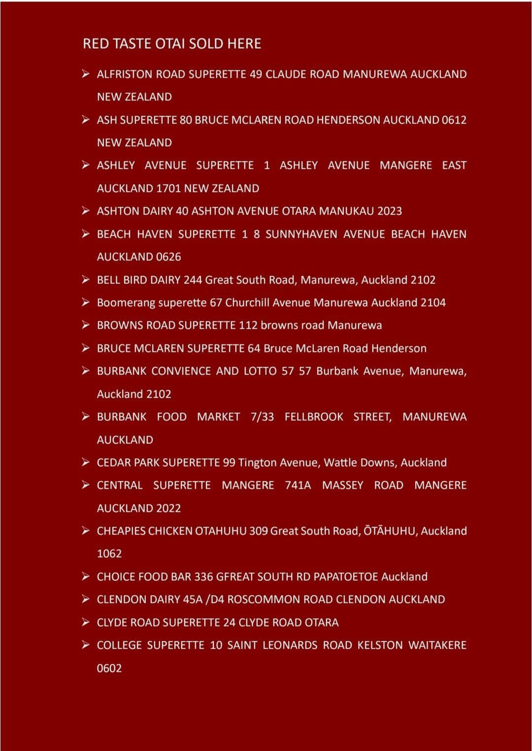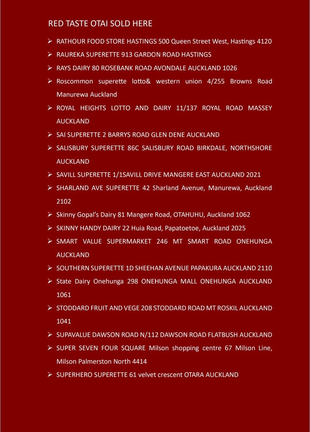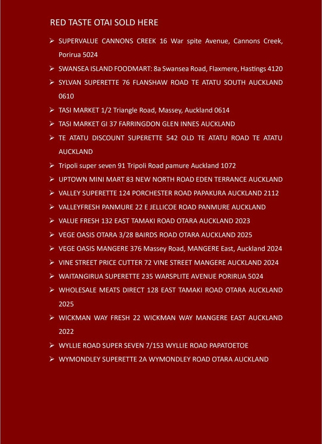 We Manufacture Red taste otai which is a Tropical fruit beverage that has no Artificial colors or Flavors. This delicacy made here in Aotearoa.