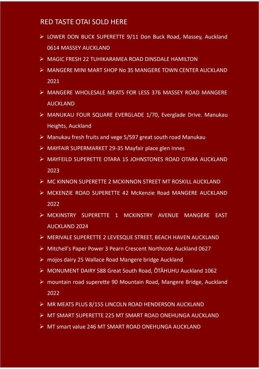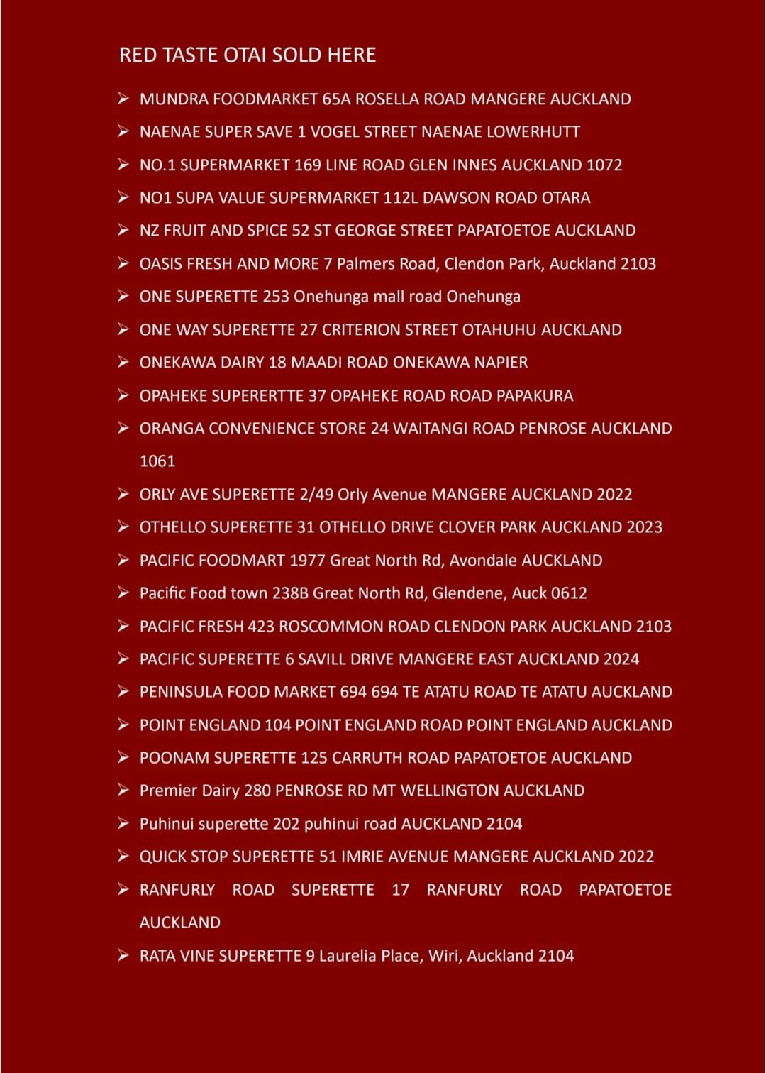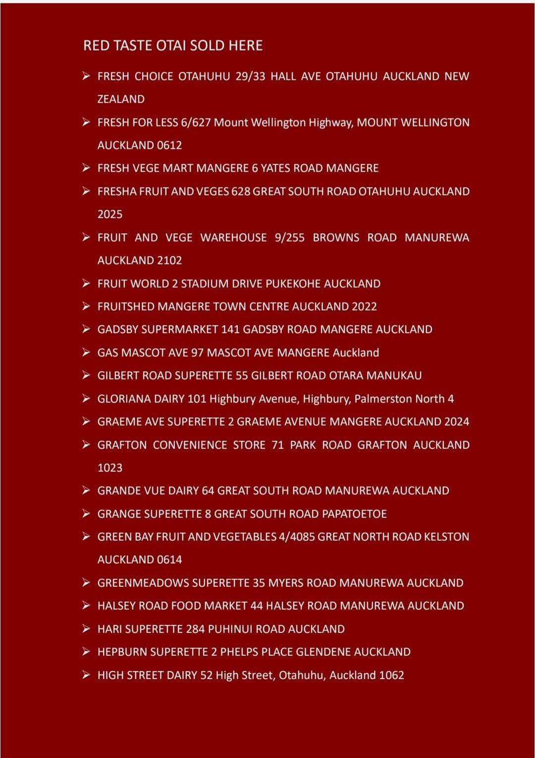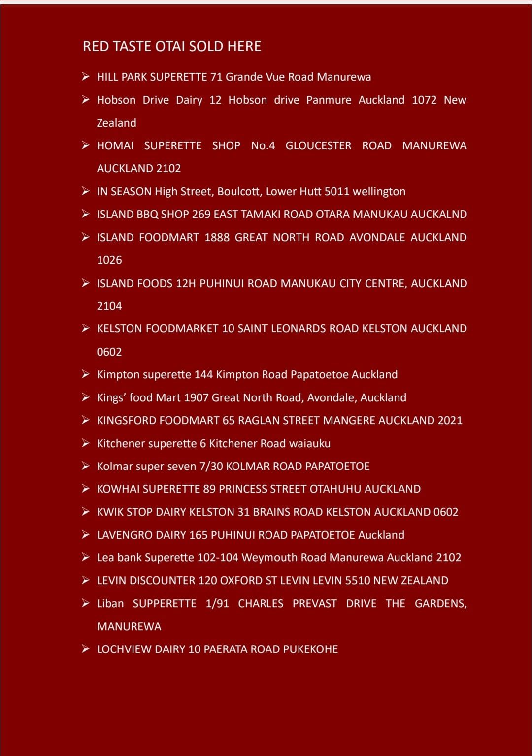 We Manufacture Red taste otai which is a Tropical fruit beverage that has no Artificial colors or Flavors. This delicacy made here in Aotearoa.